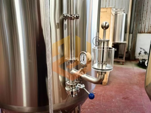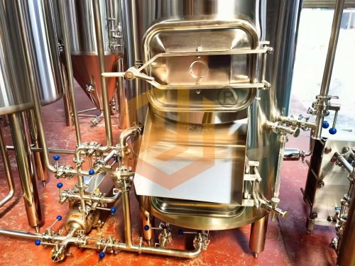 精釀啤酒設(shè)備使用的過濾槽與旋沉罐:采用上下兩層的設(shè)計(jì)方式,整體占地面積小,過濾槽采用銑制篩板,頂部采用異型人孔設(shè)計(jì),側(cè)面配有出糟口,方形人孔門設(shè)計(jì)更有利于啤酒麥糟的清理工作,同時還配有出糟板。內(nèi)部配有耕刀裝置,用于疏松麥糟層以及出糟使用。